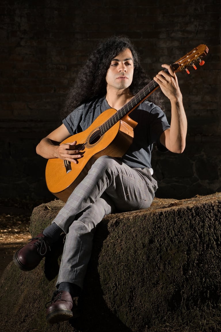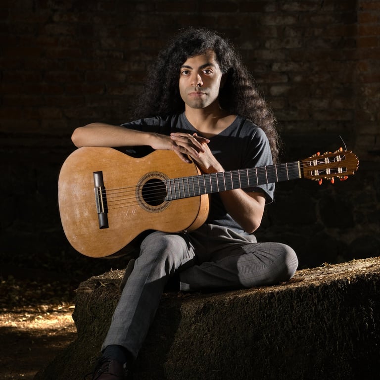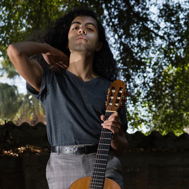Manu, o J. Manuel Castillo Calderón, es un músico y modelo que interpreta guitarra clásica. De entre muchos instrumentos que hay, la guitarra es el instrumento en que el intérprete abraza el vacío como condición para llenar de música al silencio.
